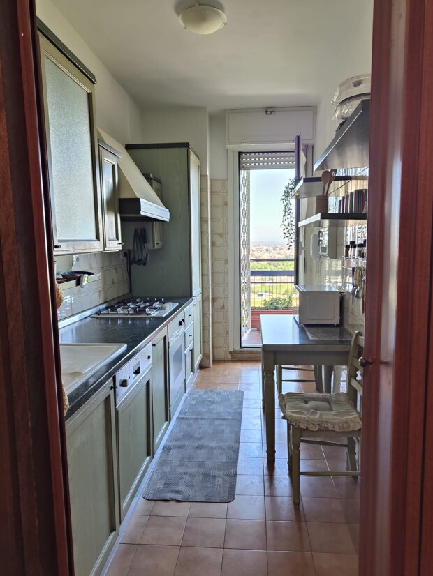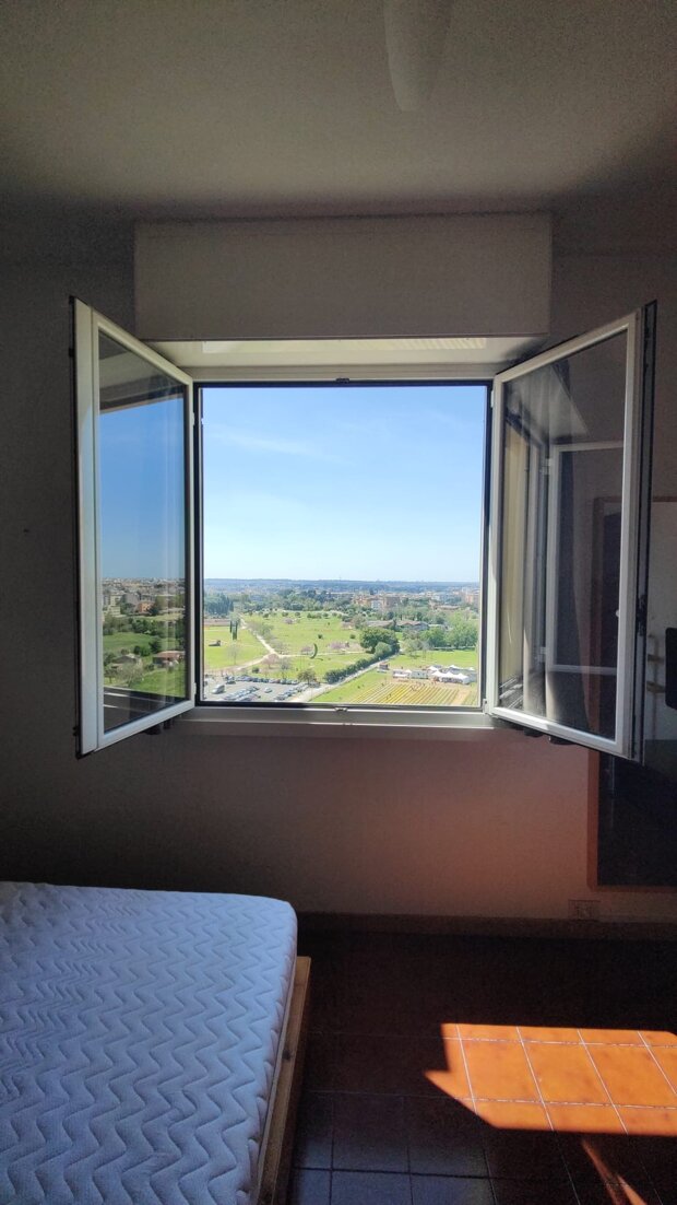 In un contesto residenziale, proponiamo un luminosissimo trilocale situato al 13° piano, di uno stabile di 14, servito da due ascensori e con soli due appartamenti al piano. L’appartamento gode di una doppia esposizione totalmente esterna, che garantisce luce naturale durante tutta la giornata, ambienti ariosi e una piacevole sensazione di privacy e tranquillità con una vista che spazia dal parco Archeologico di Villa de Sanctis, che ospita il Mausoleo di Sant'Elena, un tocco di storia unico proprio sotto casa.