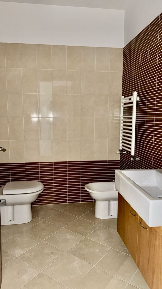 Le finiture interne, come il parquet in rovere, le porte in noce e gli infissi in vetro camera Douglas, conferiscono all’immobile un tono elegante e contemporaneo. L’appartamento è inoltre dotato di impianto di condizionamento inverter caldo/freddo, impianto d’allarme, rilevatore elettronico di gas, porta blindata e videocitofono a colori. Il complesso dispone di fotovoltaici condominiali e l’unità è dotata di un pannello solare di proprietà, un ulteriore vantaggio in termini di efficienza energetica.